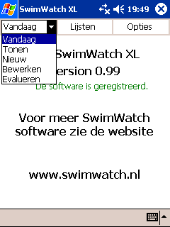 Bij het starten van het programma wordt eerst het venster 'Vandaag' getoond. Via het panel 'Lijsten' kunnen namen van zwemmers, coaches, analisten, etc. worden ingevoerd. Via het panel 'Opties' kunnen vele opties worden ingesteld.